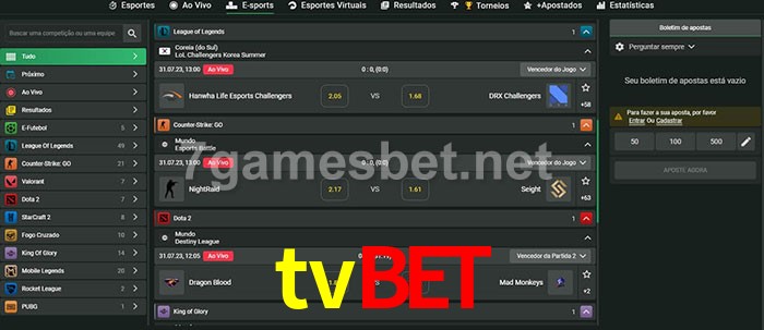 O tvbet oferece uma grande seleção de opções de apostas em e-sports com probabilidades competitivas